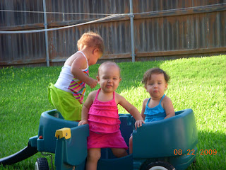 The girls love to climb in and out, over the sides, stand up on the seat and they love to be pulled too. Try pulling three girls in San Augustine grass....whew!